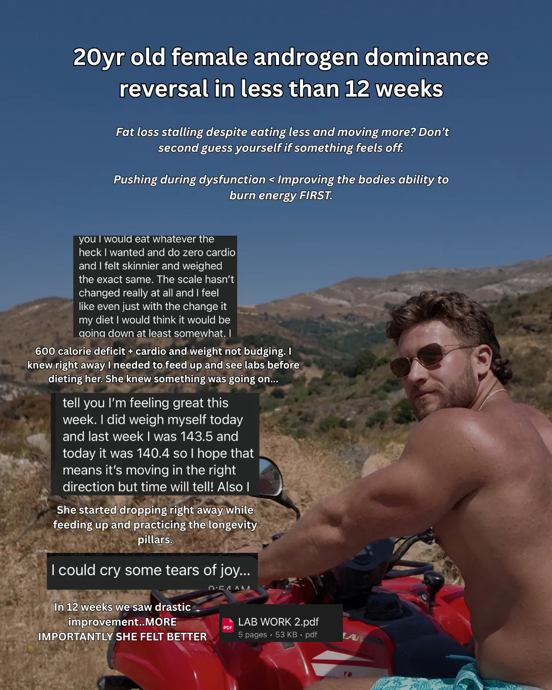 I’ve been on both sides elite performance and complete physiological burnout. That’s what led me to uncover the systems behind fat loss that actually lasts without wrecking hormones, destroying your metabolism, or living at 1,400 calories. Now, I help high-performing professionals, athletes, and parents rebuild their metabolism, reverse symptoms, and optimize body composition with a biology-first system rooted in advanced lab analysis, lifestyle periodization, and performance-based protocols.