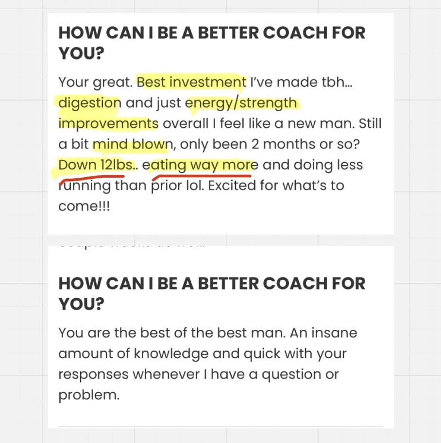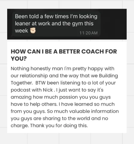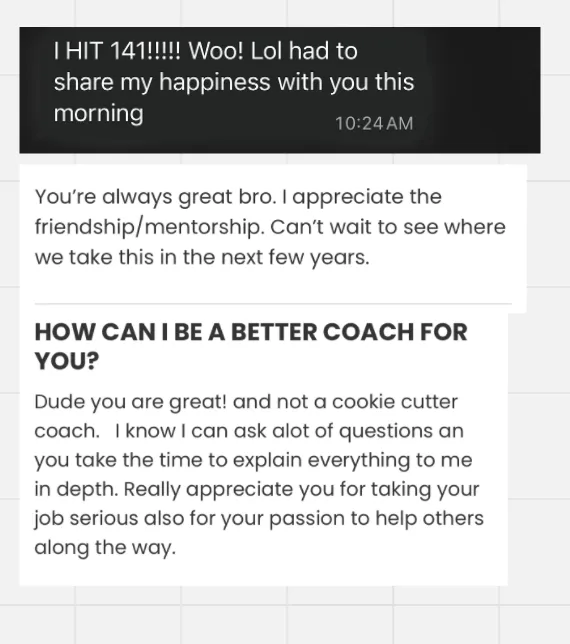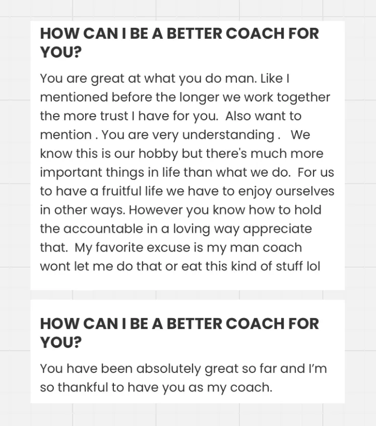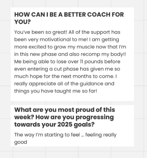 Most clients train 2–5x/week and spend less than 2 hours a week on check-ins, education, and communication. This is built for real people with full lives.